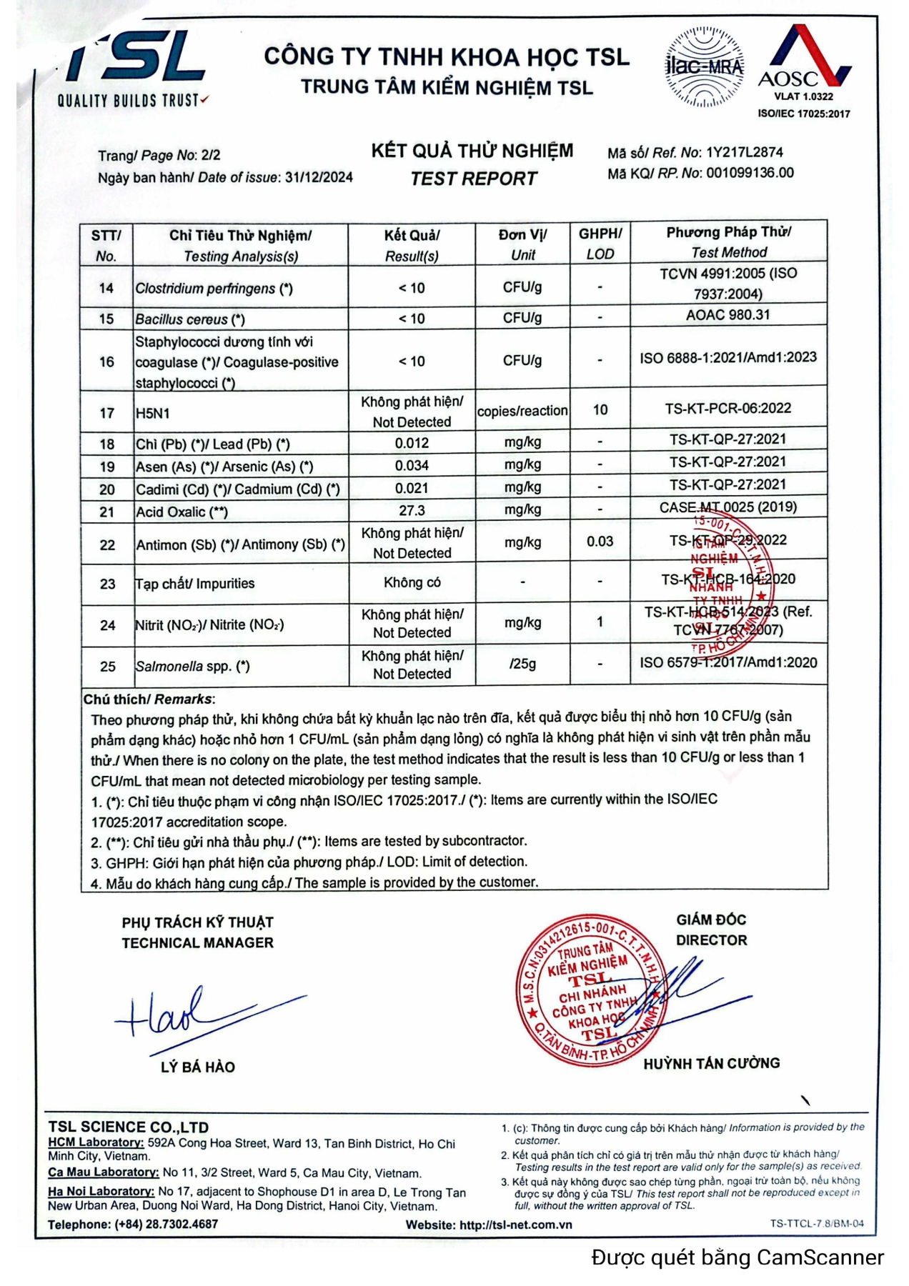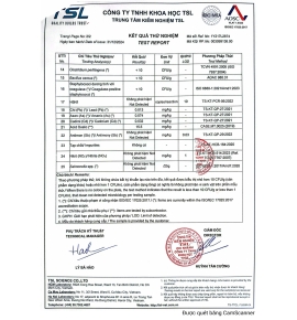 Chứng nhận mẫu nước dùng sơ chế & vệ sinh thiết bị dụng cụ
