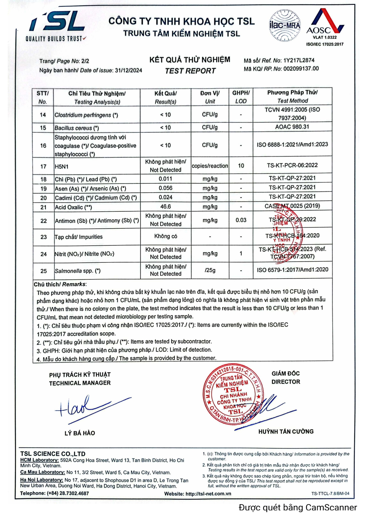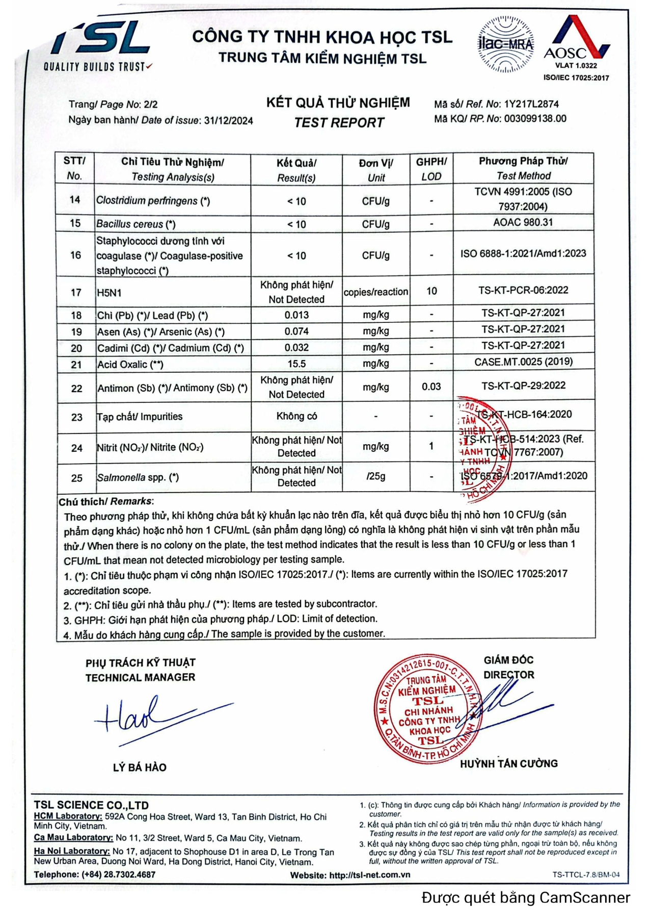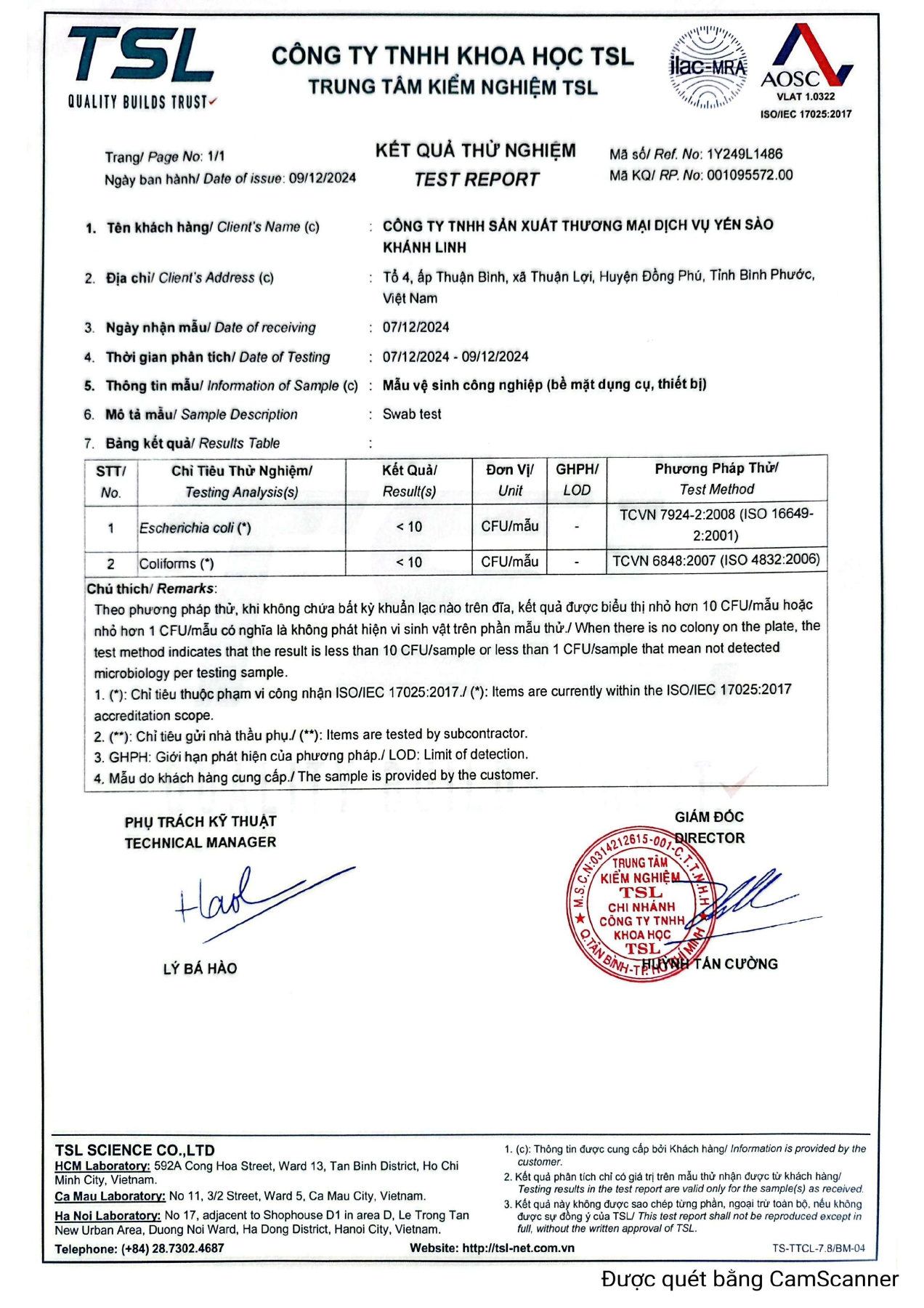 Chứng nhận mẫu vệ sinh công nghiệp